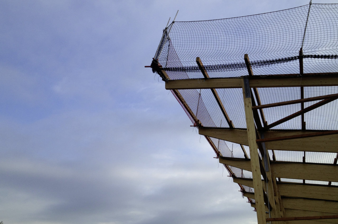 Randsicherung in Kombination mit Schutznetz an Stahlkonstruktion